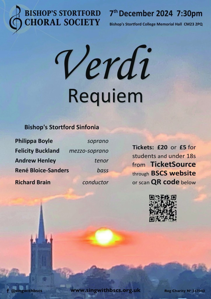 Bishop’s Stortford Sinfonia is pleased to be collaborating again with Bishop’s Stortford Choral Society for their winter concert. Verdi’s Requiem is a dramatic work which was declared by Johannes Brahms as the creation of ‘a genius’. This will be an evening sure to thrill!